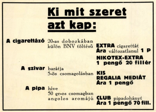 Az 1937-es vásár újdonsága a BNV-Extra cigaretta
