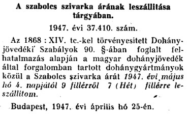 1946. július 14-től: 400.000 Adópengő = 3.000.000.000.000.000 Pengő