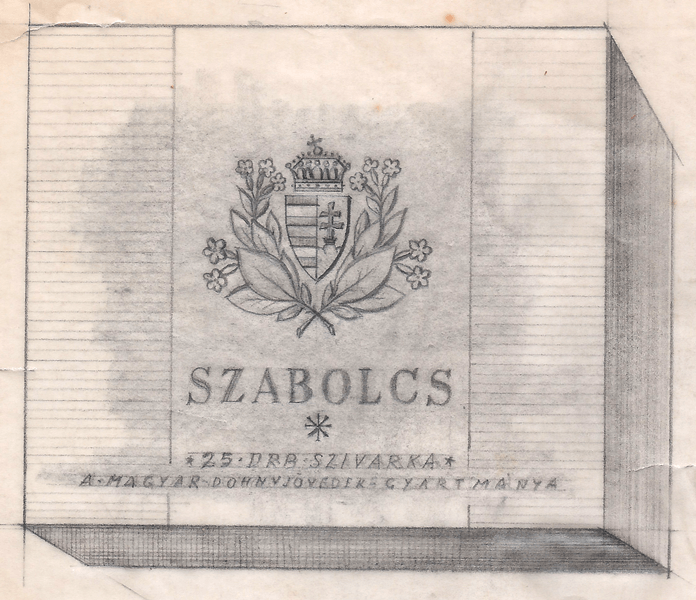Végh Gusztáv /1889-1973/ grafikus, festőművész eredeti dobozterve - nagyjából hasonlóan valósult meg a csomagolás: