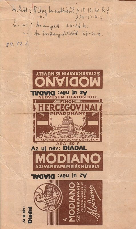 1939-től a korábbi, népszerű Modiano cigarettapapír és hüvely nevet változtatott, innentől Diadal néven volt kapható. A változásra a cigarettadohány csomagján is felhívták a figyelmet.