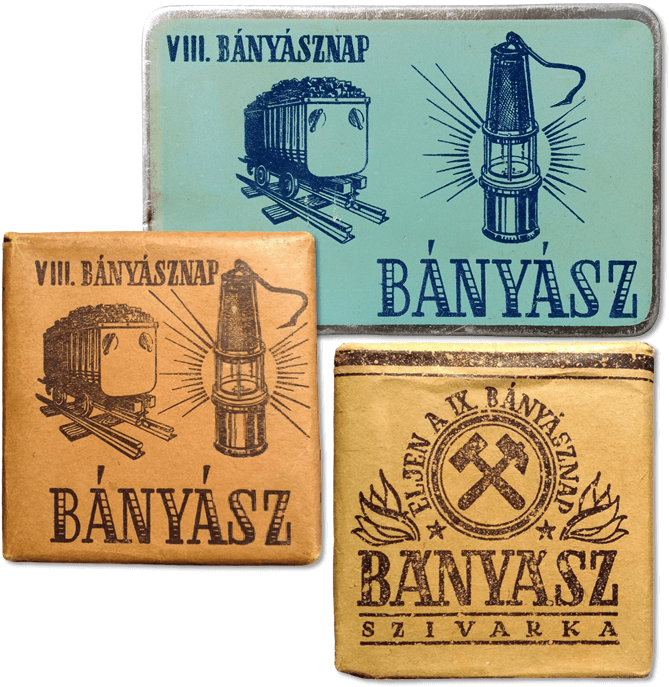 Ahogy a cikk is írja, az étel-ital mellett kielégítették a munkásember másik nagy szükségletét is: a dohányipar a jeles eseményre Bányász elnevezésű cigarettát gyártott. Hogy először mikor jelent meg ilyen szívni való, arról nincsen pontos információ. Sajnos a korabeli napilapokban nem esett szó ezekről, annak ellenére, hogy újságjaink akkoriban még rendszeresen beszámoltak arról, ha a dohányipar valamilyen újdonsággal állt elő. Ami biztos, hogy az első "újkori" Bányásznapot 1951-ben tartották, és innentől évente megrendezésre került. Az is bizonyos, hogy 1956-ban már jelent meg Bányász cigaretta, és onnantól kezdve évről évre folytatódott ez a hagyomány. Az ötvenes évekből származnak a 25 szálat tartalmazó, 3 forintért árusított csomagok, melyeken az évszám nincs feltűntetve, így megjelenésük sorrendje is bizonytalan. Az ország legnagyobb és legmodernebb dohánygyára, a lágymányosi készítette az ünnepi csomagokat, alkalmanként 1-20 millió szálas tételben.