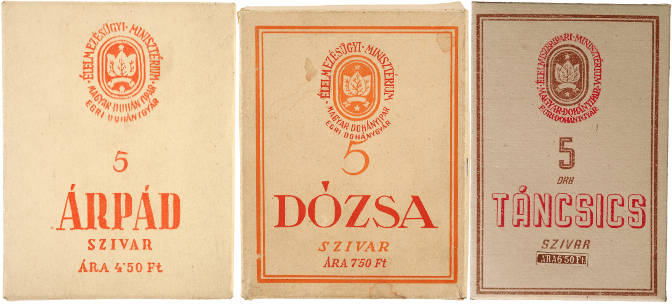 Február 23-ától volt kapható a Csárdás szivar 100 darabos kartondobozban 28 forintért, majd április 15-től az 5 darabos Lehel 7,50-ért.