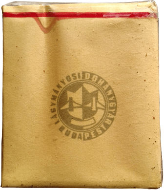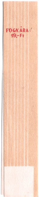 Ismeretlen funkciójú papírszalag. A rajta lévő ár alapján talán négy csomag cigarettát kötöttek egybe vele.