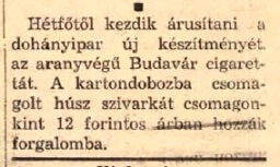 Korának legdrágább cigarettája: ötször drágább volt a Kossuthnál, hét és félszer drágább a Munkásnál és több, mint kilencszer drágább a (legolcsóbb) Sellőnél!