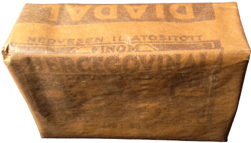 Ugyanez korábbról, 80 filléres árral, az illatanyagokat megőrző zsírpapírba burkolva - Katona Ferenc gyűjteményéből:
