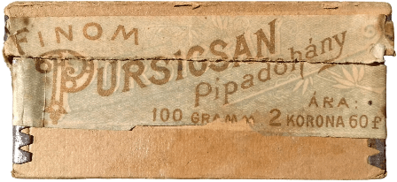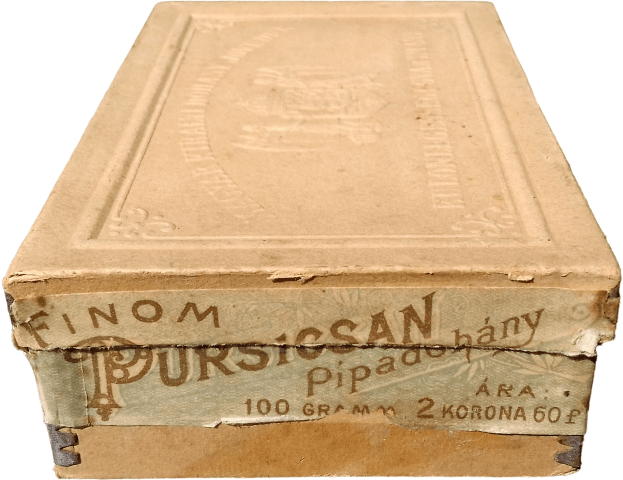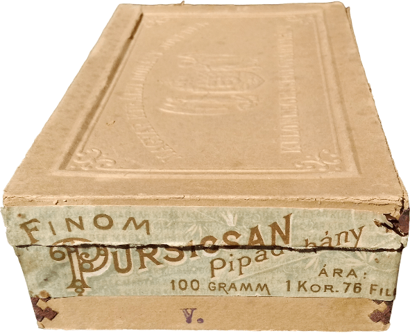 Viszont a fentebbi képen lévő doboz a pecsét szerint 1898-ban készült, ára mégis 2,60 Korona - ez az ár 1911. július 1. és 1915. szeptember 30. között volt érvényben. Hogy mi a magyarázat, az örök rejtély marad.
