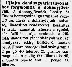 Az 1925-ben bevezetett Gentry dohány 1933 nyarától nedvesen illatosított változatban is kapható lett. Csomagolásaik között csupán annyi különbség volt, hogy a sima változaté arany nyomással, míg az illatosítotté sárgával készült. Hogy az aromákat jobban megőrizze a doboz, még zsírpapírral is be volt burkolva.