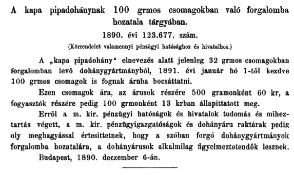 - 30 grammos csomagban: ~1911~1915 között, 9 fillérért