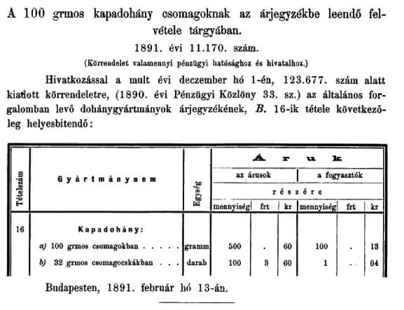 - 34 grammos csomagban: 1875-ben biztosan, 4 fillérért