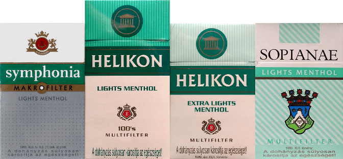 Az 1990-es évek elején, a hazai dohánygyárak privatizációját követően nálunk is kezdett kialakulni a termékcsaládos rendszer, azaz egy-egy márkanévhez többféle erősségű cigaretta tartozott. Az alap a legerősebb, nemzetközi jelöléssel általában piros, vagy sötét színű csomagolásban. A könnyű, szuper könnyű, stb. változatok a kék világosodó árnyalatait használták, a legkönnyebbet sokszor fehér színnel jelölték. Ekkor már egy versenyképes termékcsalád elmaradhatatlan része volt a zöld színnel jelzett mentolos változat, így egyre-másra jelentek meg a mentolos szívni valók.
