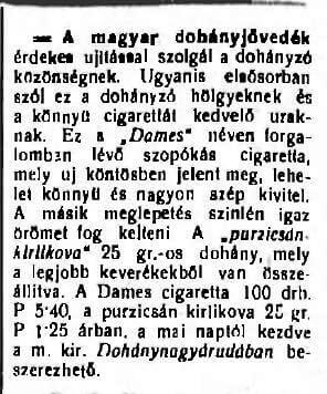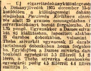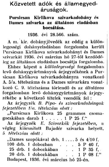 A további időszakból az árak ismeretlenek. A háború miatt a dohánytermékek csak korlátozott mennyiségben álltak rendelkezésre, gyártásuk változó volt. A trafikosok egy-egy márkából már csupán a „Beszerzési Alap” meghatározott százalékát rendelhették meg havonta, Pursicsan Kirlikovát: