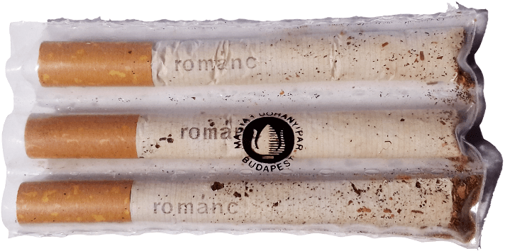 3 szál lefóliázott cigaretta. Valószínűleg a bevezetése előtti próba-szívások alkalmával osztották szét a tesztelők között.