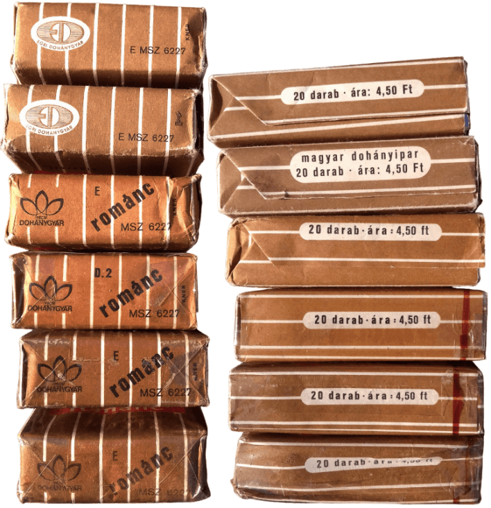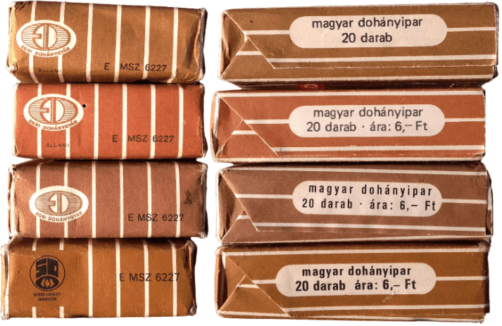 Nagy mennyiségben készült, az összes dohánygyár gyártotta, így az idők során megszámlálhatatlan "változatban" létezett. A nyomdatechnika színvonalának függvényében a csomagok színe is különbözött és a feliratokban is apró eltérések voltak. Néhány saját darab és végtelen mennyiségű Románc Katona Ferenc gyűjteményéből: