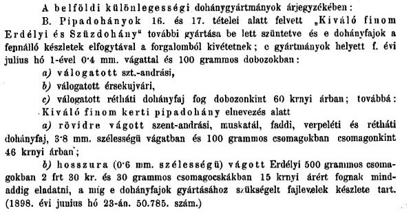Válogatott Érsekújvári pipadohány 1.